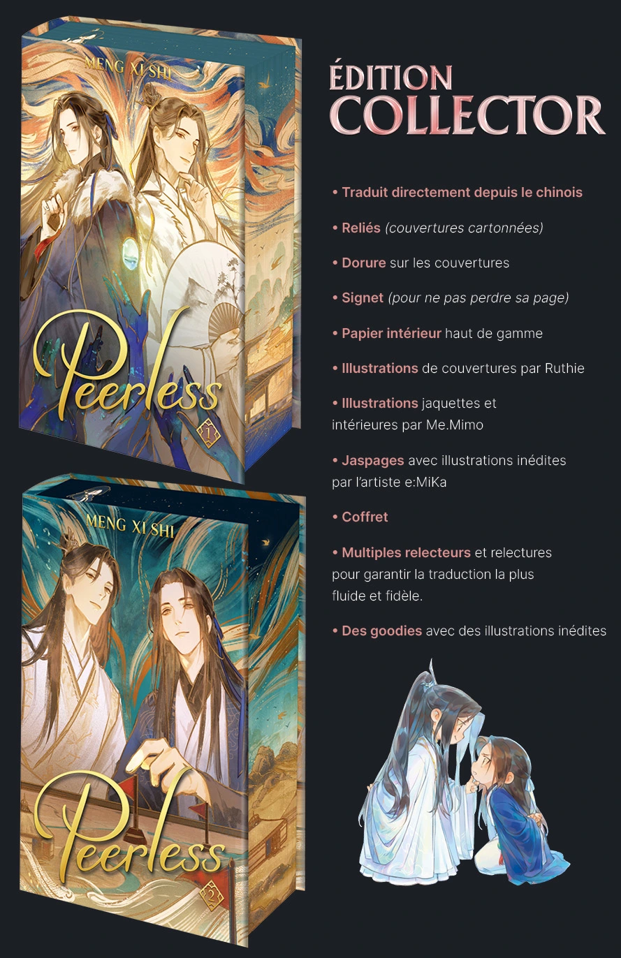 Peerless, comme toutes nos autres licences danmei, est traduite directement depuis le chinois.
